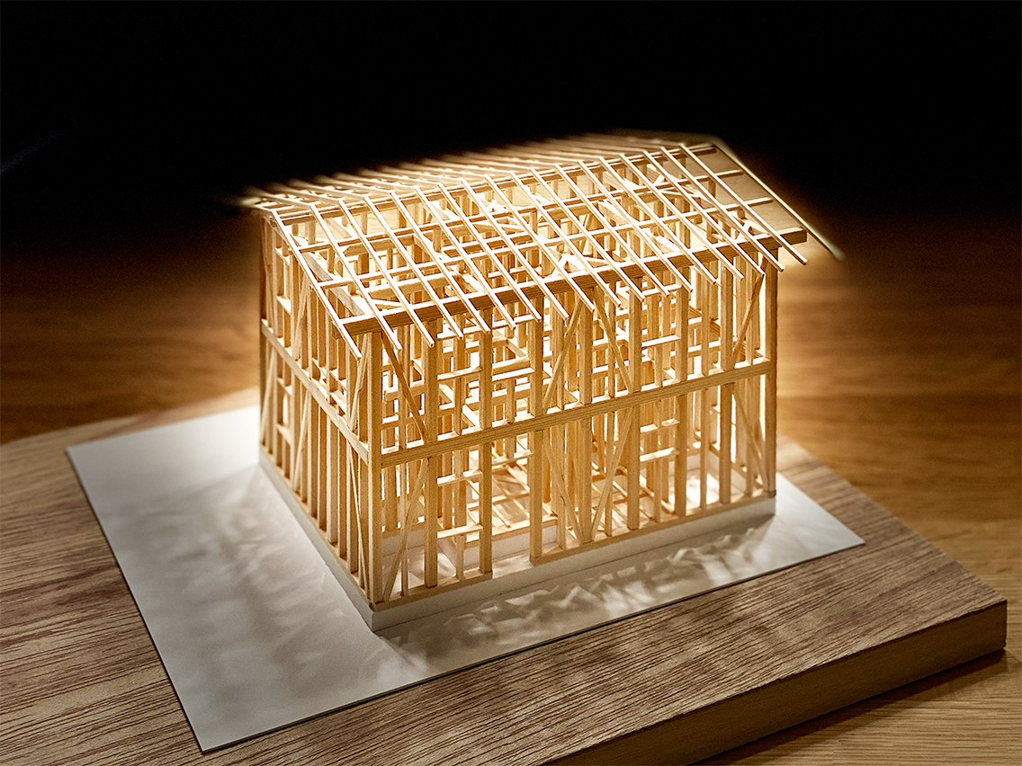 大学の建築学部で学んでいる末っ子が課題で作製した建築模型(軸組)