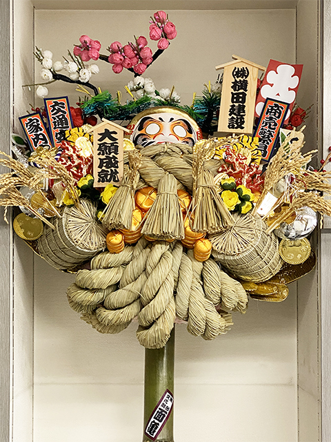 熊手は毎年大きくしていくのが良いとされていますが、横田建設では飾る場所の都合により、昨年購入した熊手と同じ大きさが限界です。
